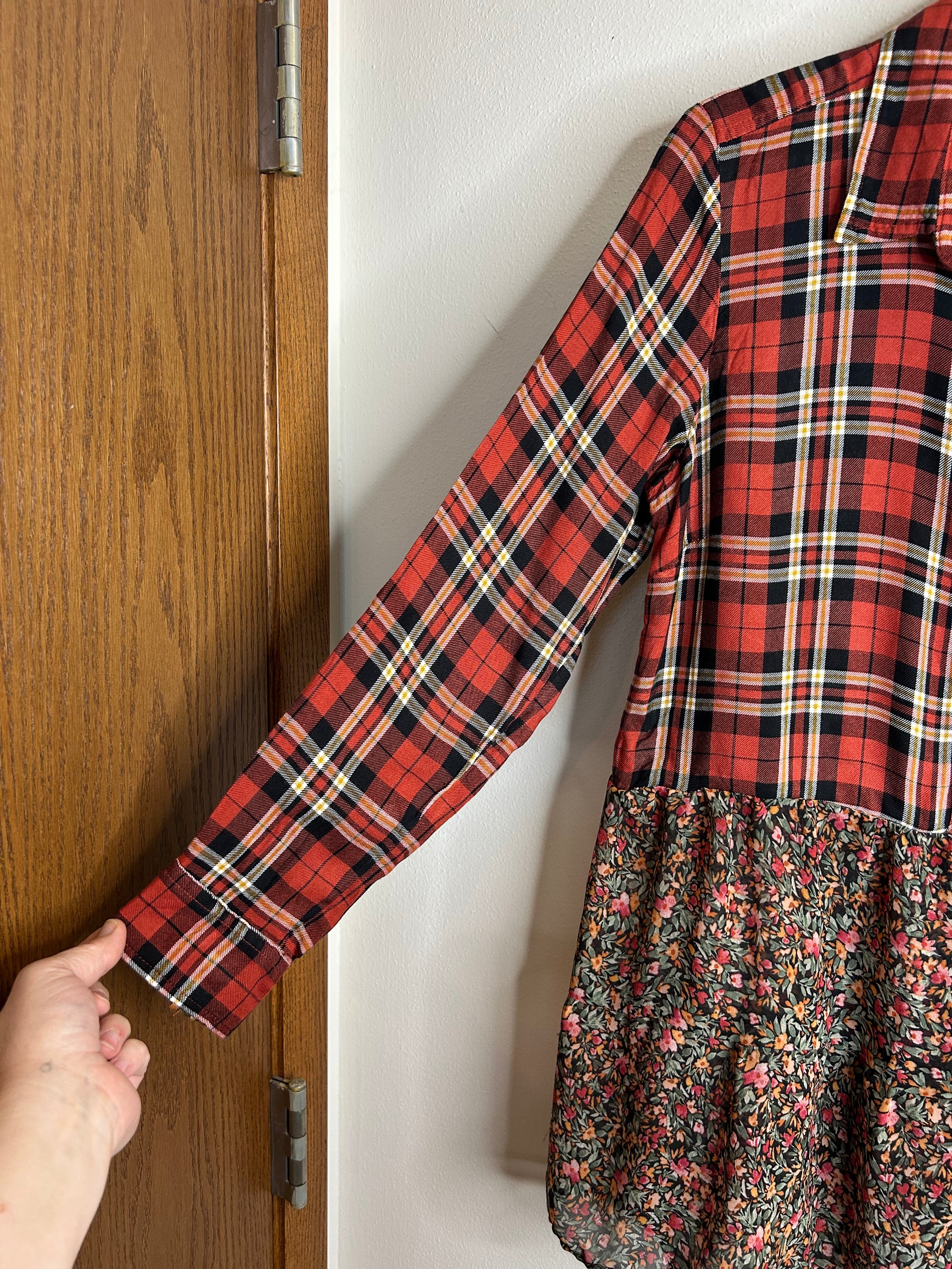 Dark orange/rust flannel with ruffle trim upcycled womens size S