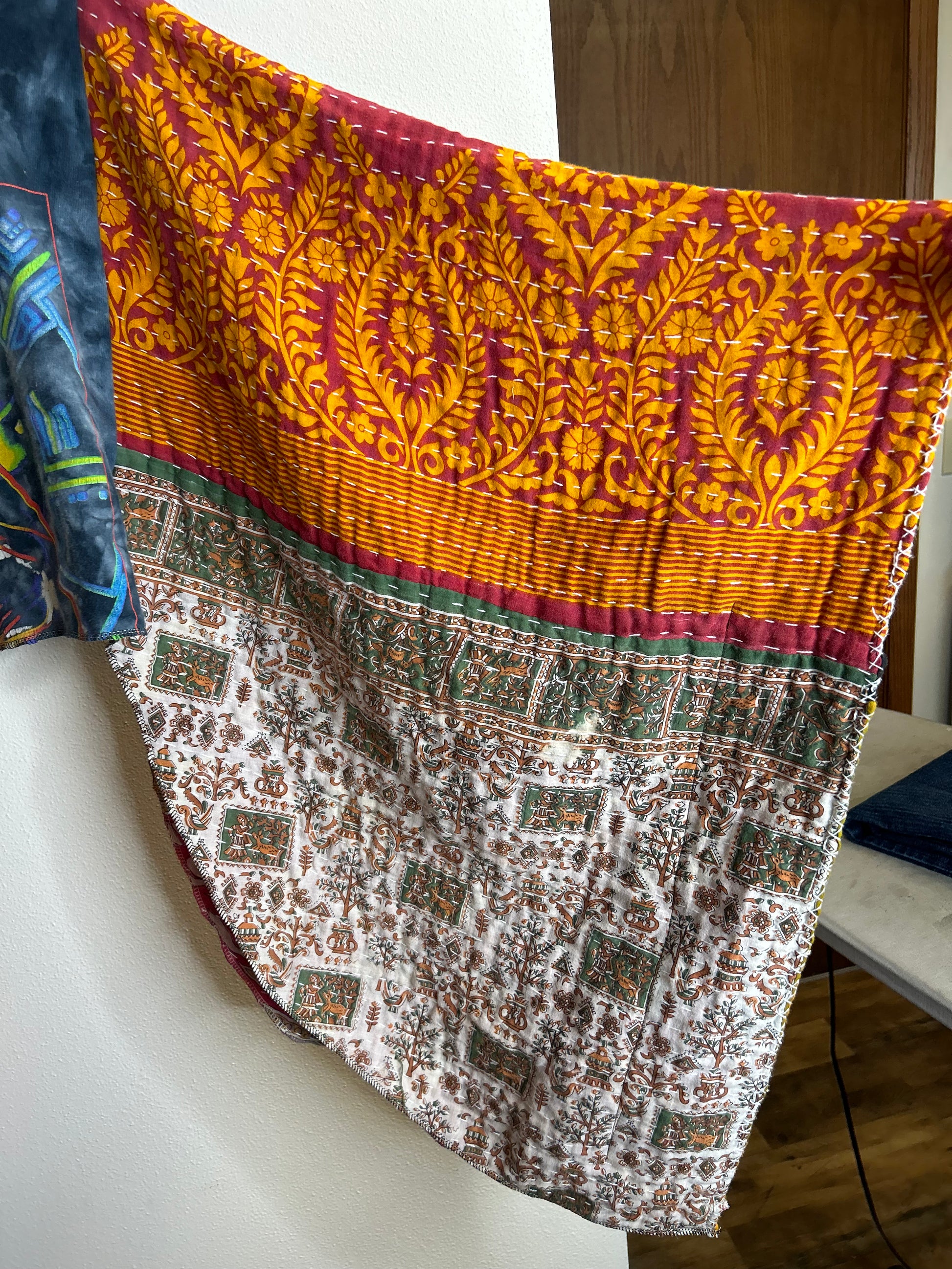 Def Leppard cropped upcycled kantha poncho
