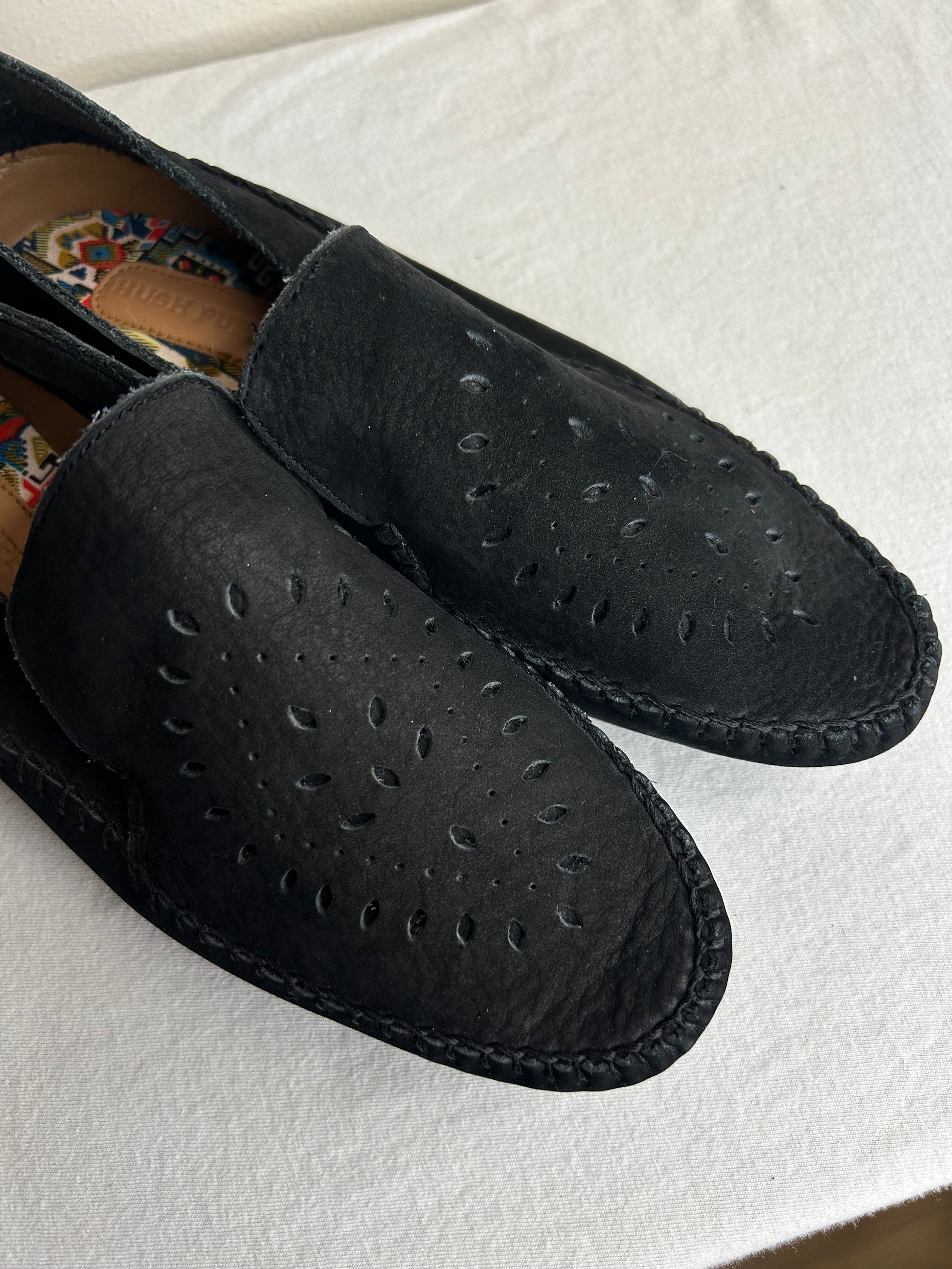 Gently used Hush Puppies black moccasin style shoes Womens 9.5