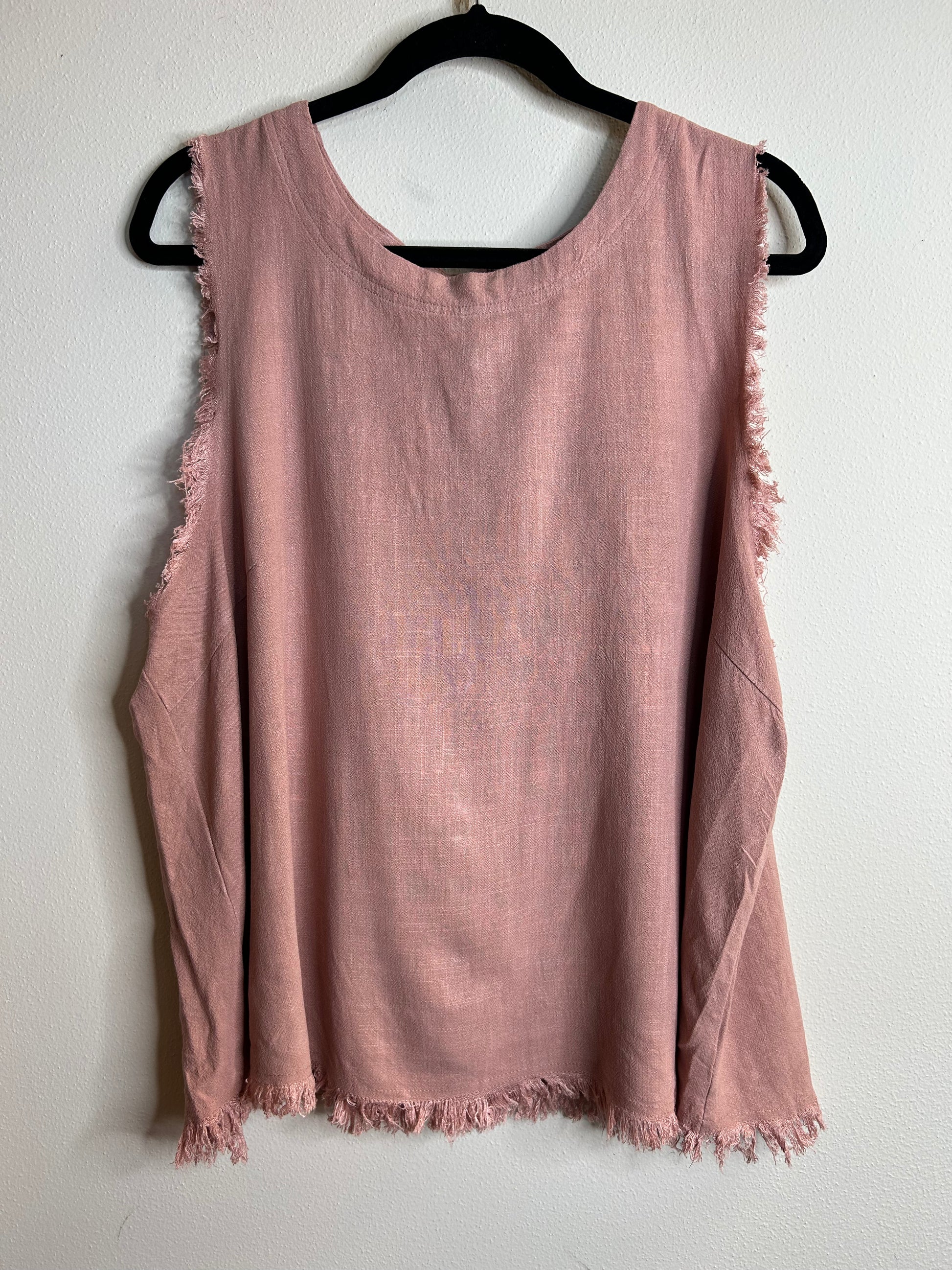 GiGio dusty pink button up frayed plus size tank top linen blend womens size 1X