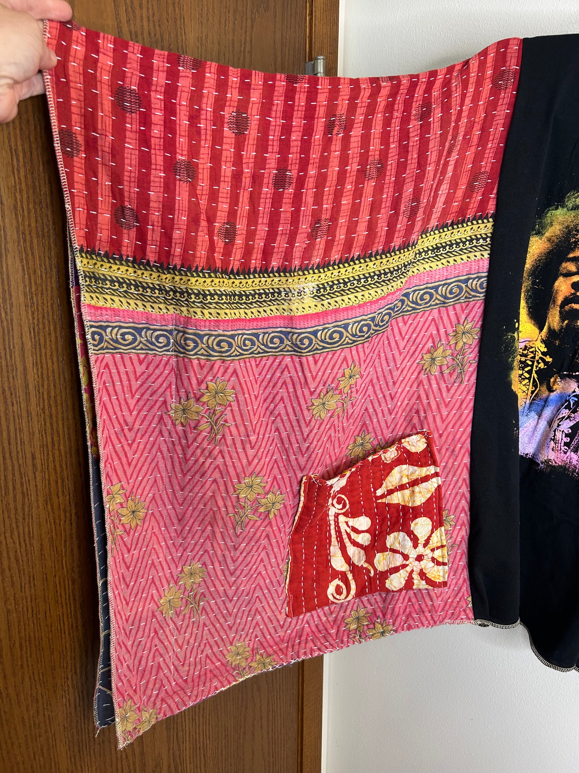 Jimi Hendrix upcycled kantha poncho -one size fits most, pullover style, 2 front pockets, fits sizes S-3x