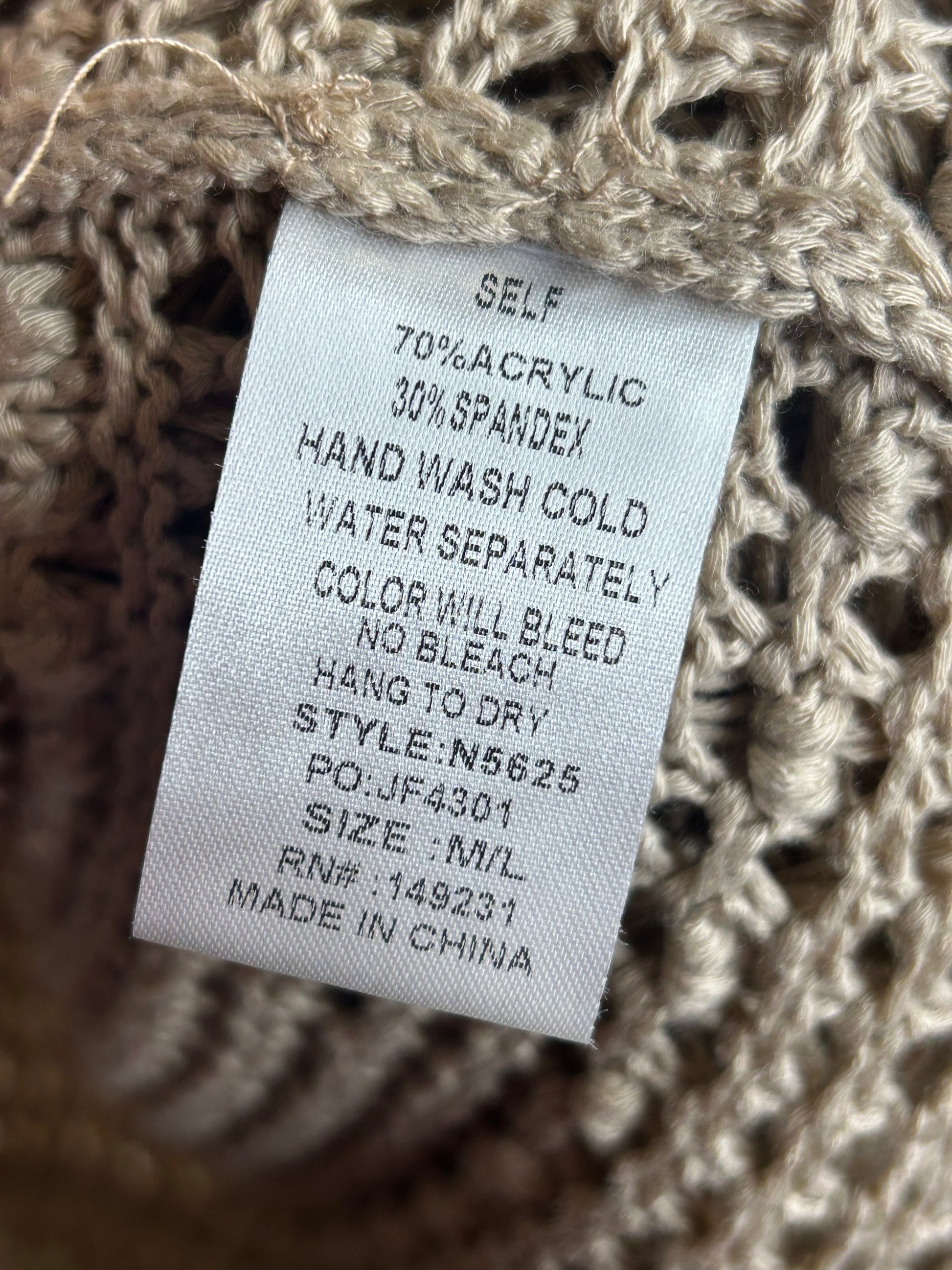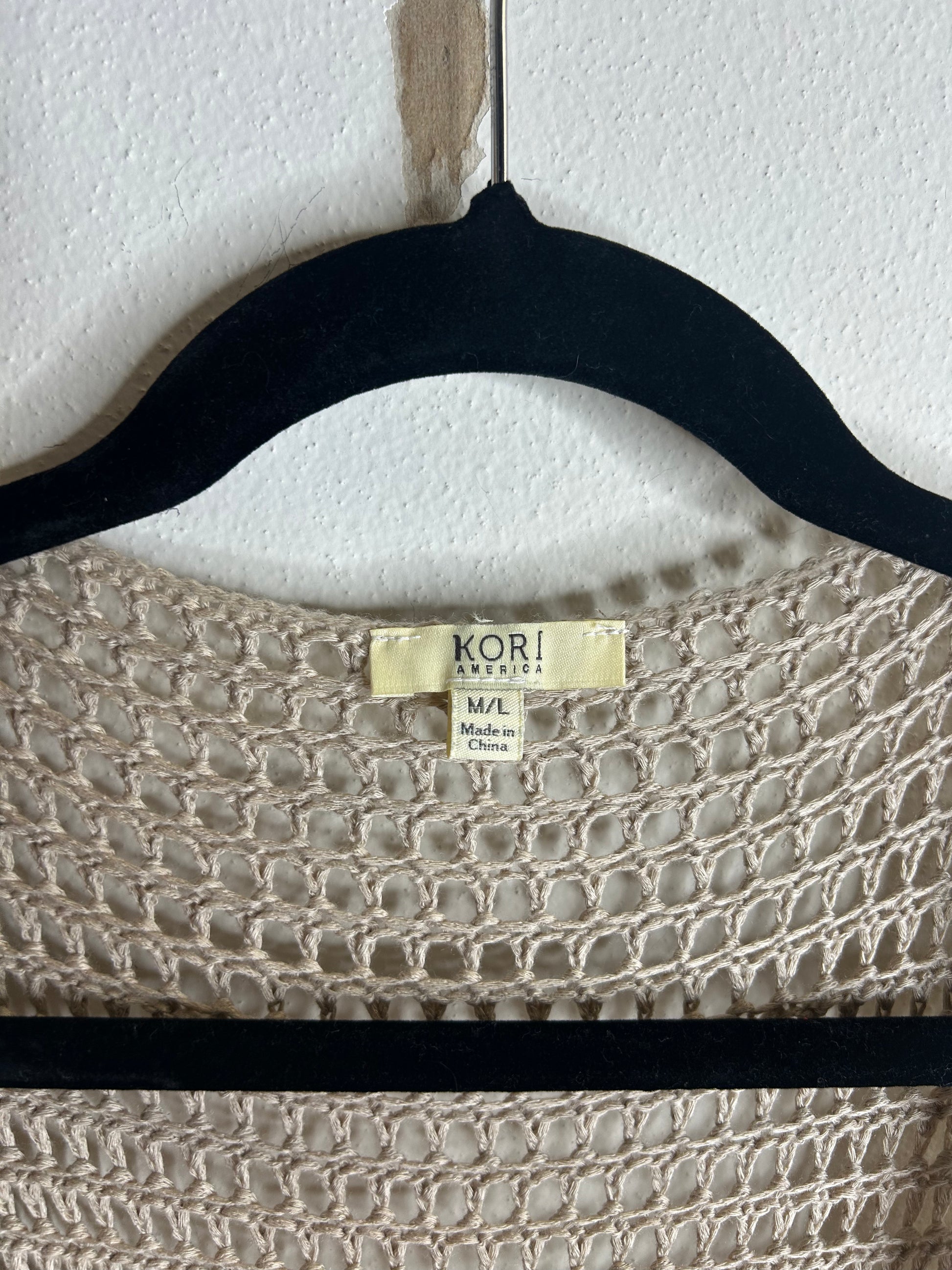 Kori America women’s M/L boho hippie crotchet beige tan fringe long vest