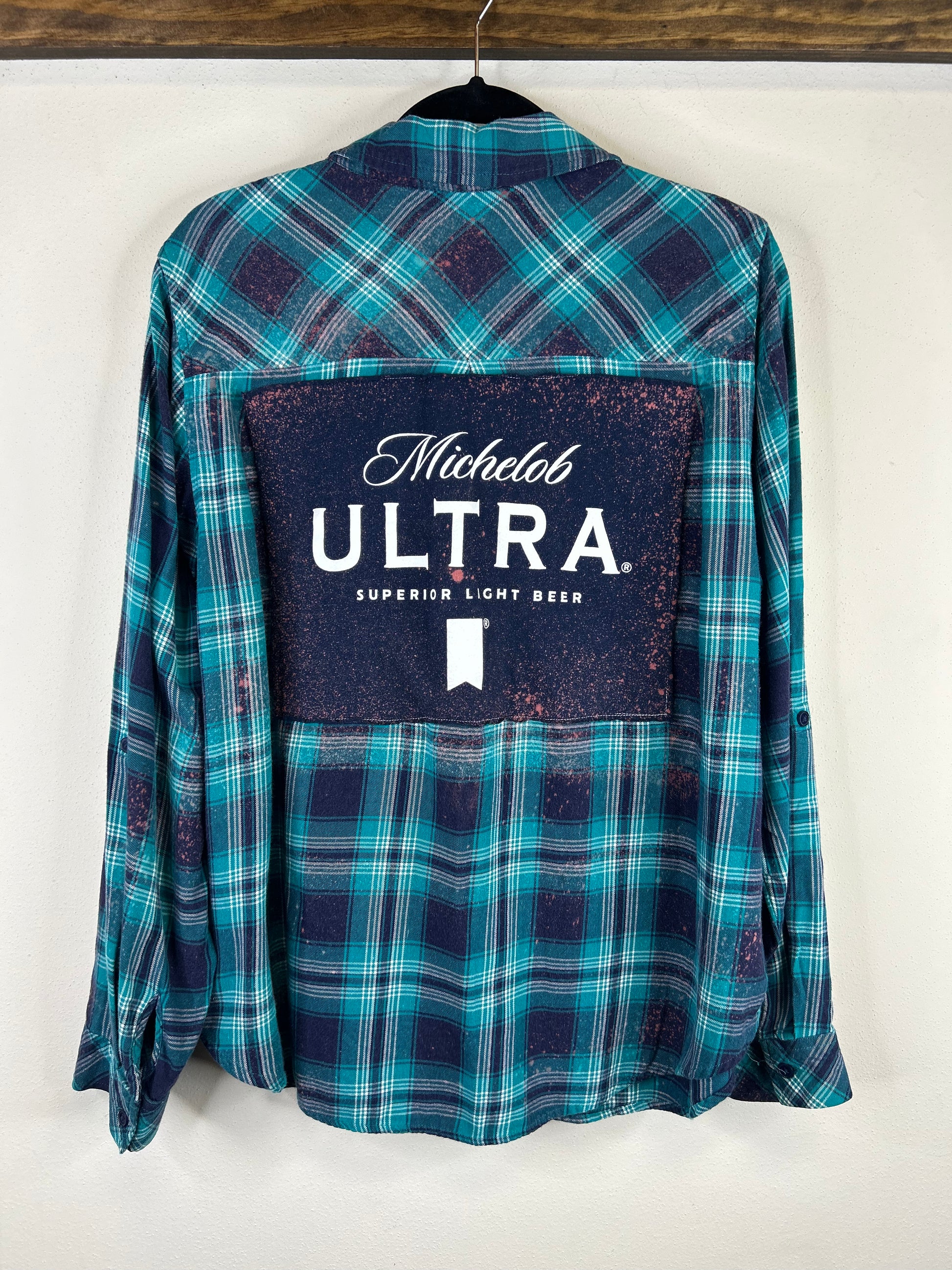 Michelob Ultra upcycled flannel shirt women’s size 1X blue