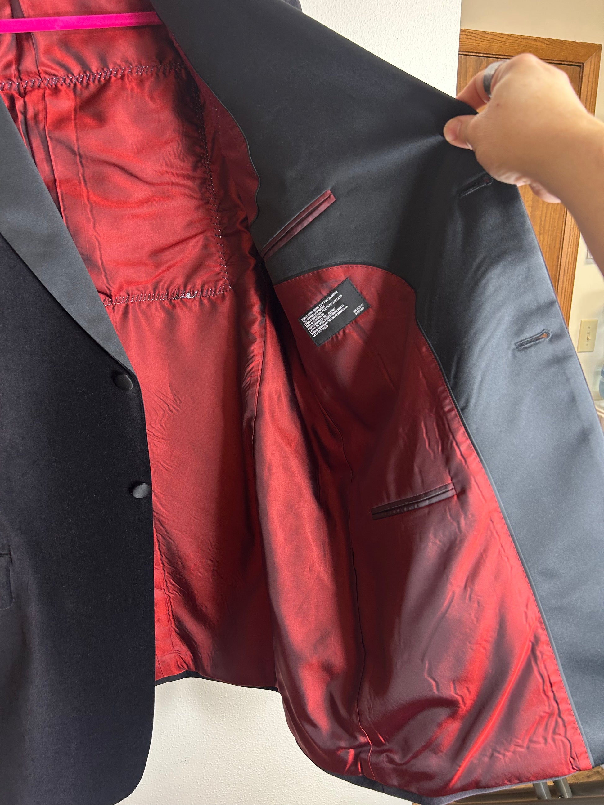 Ouija Board upcycled suit jacket men’s/unisex size XL/46, button closure, 3 front pockets, 3 inside pockets, handmade patches