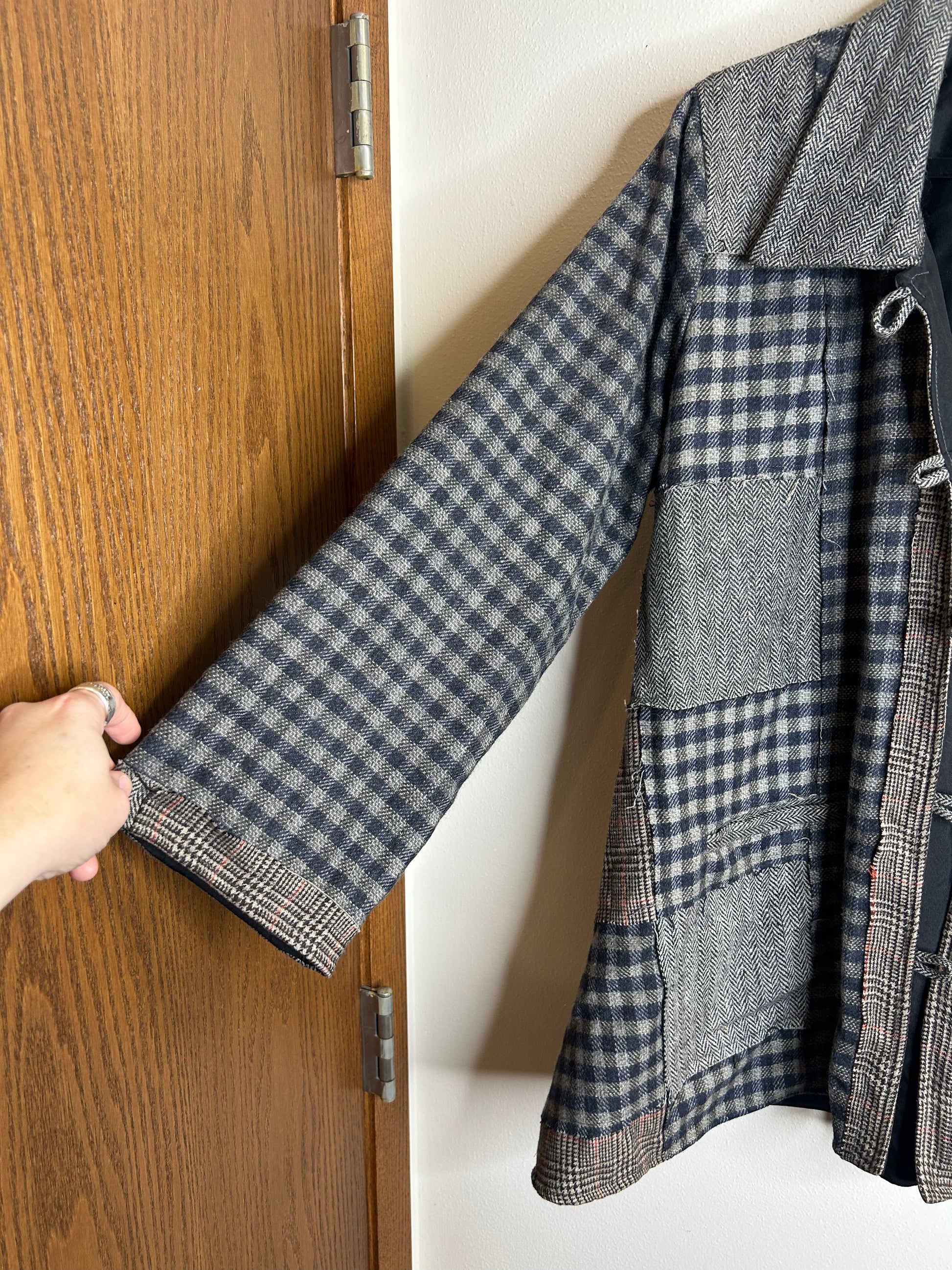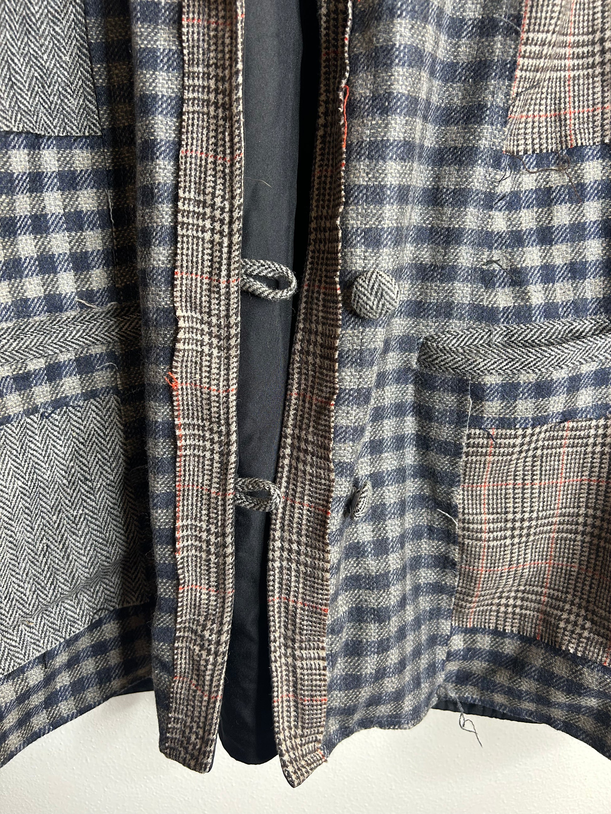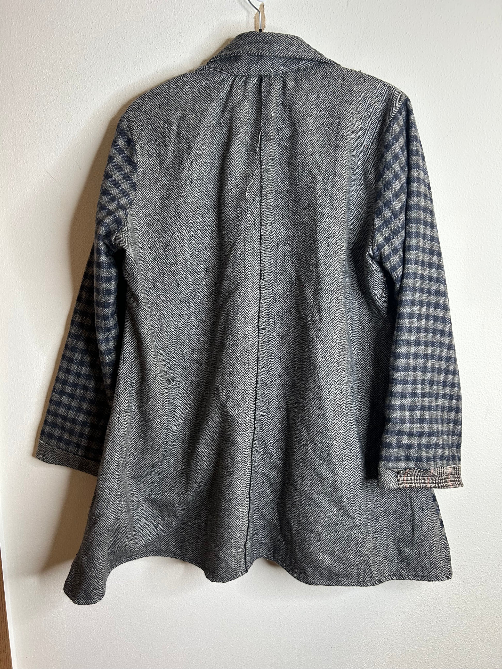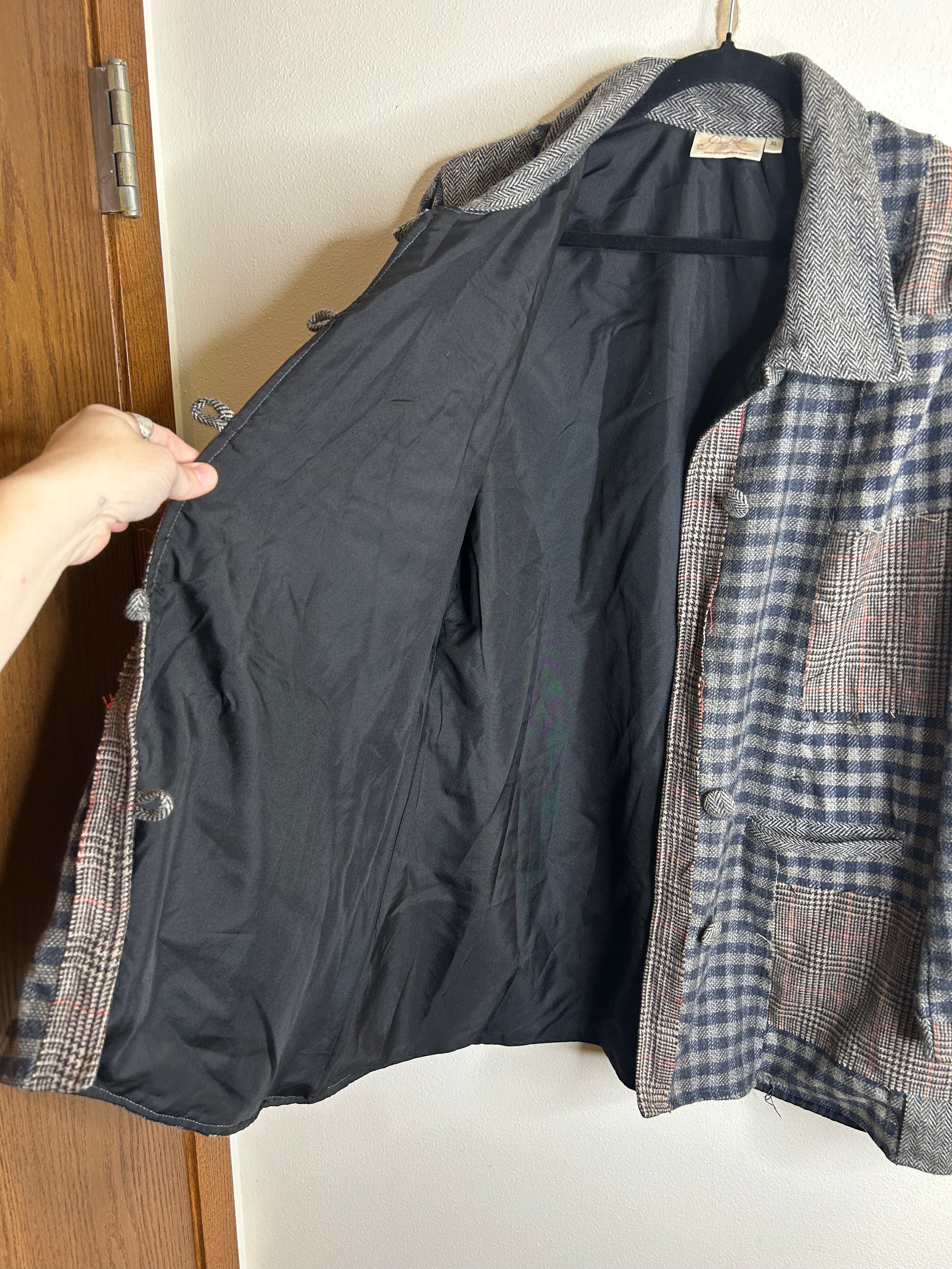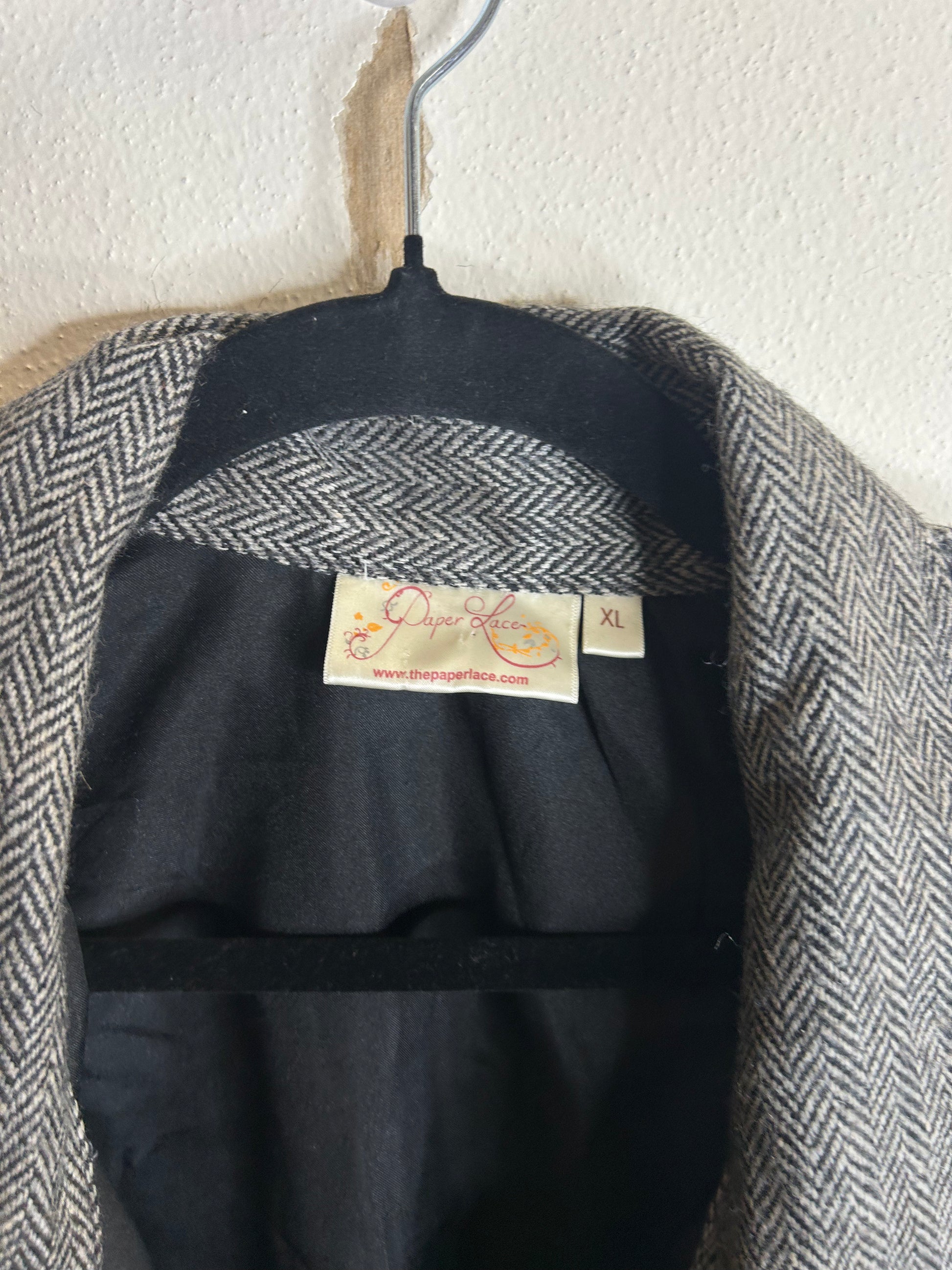 Paper Lace brand button up patchwork jacket womens XL. 2 pockets. Wool blend. Black inner lining.