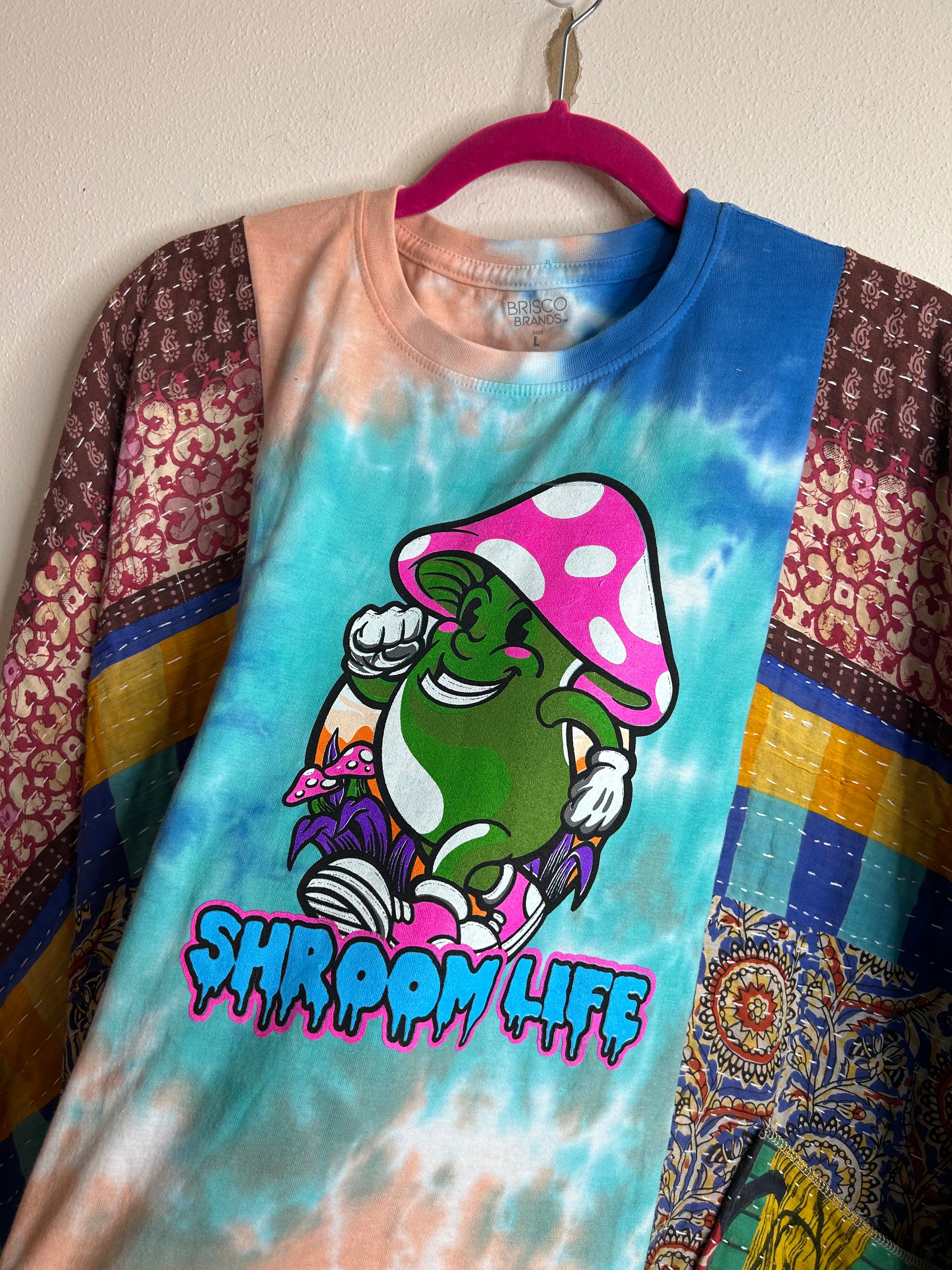 Shroom Life upcycled kantha poncho -one size fits most, pullover style, 2 front pockets, fits sizes S-3x