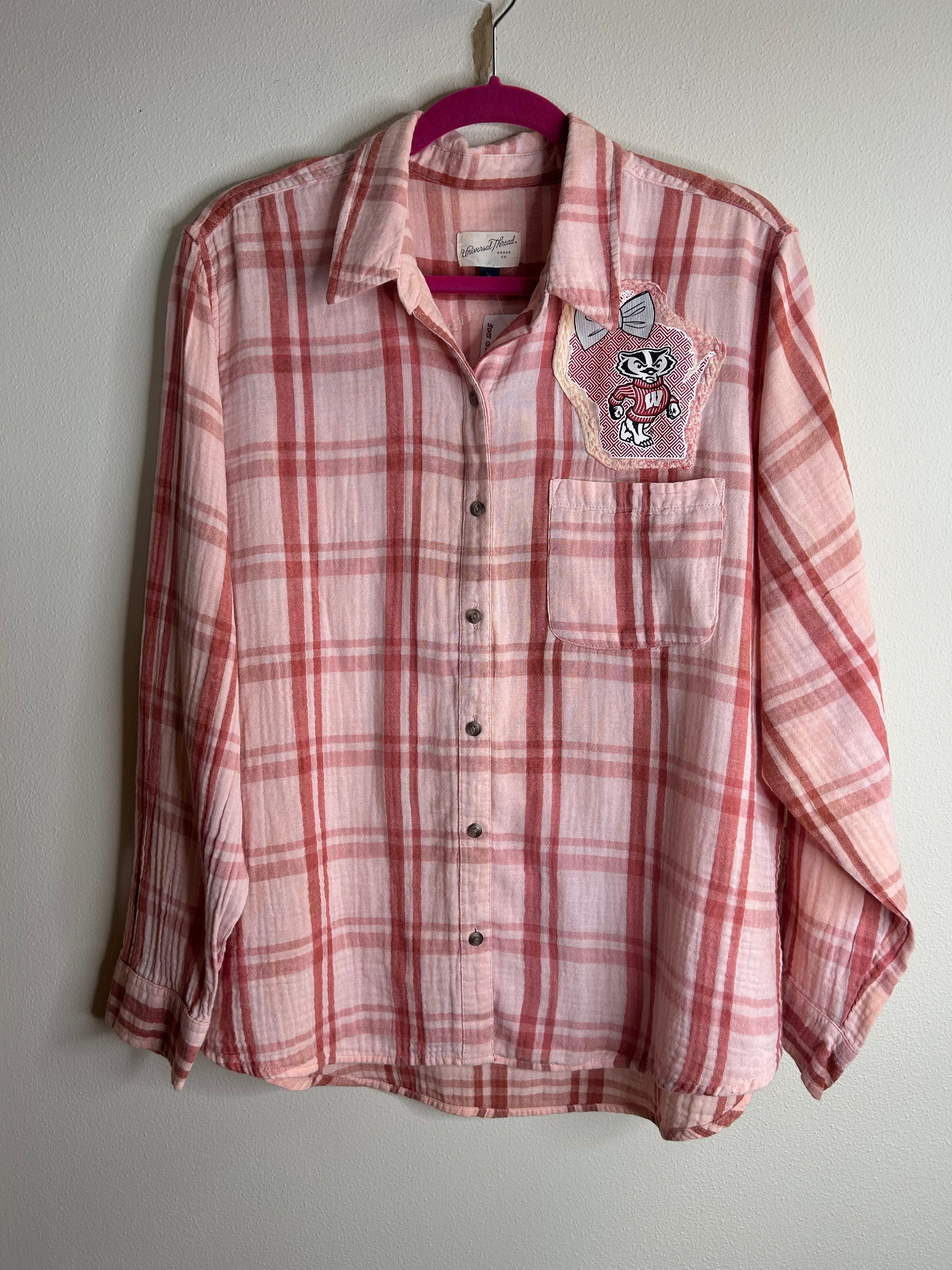 Wisconsin Badgers upcycled flannel shirt womens XL