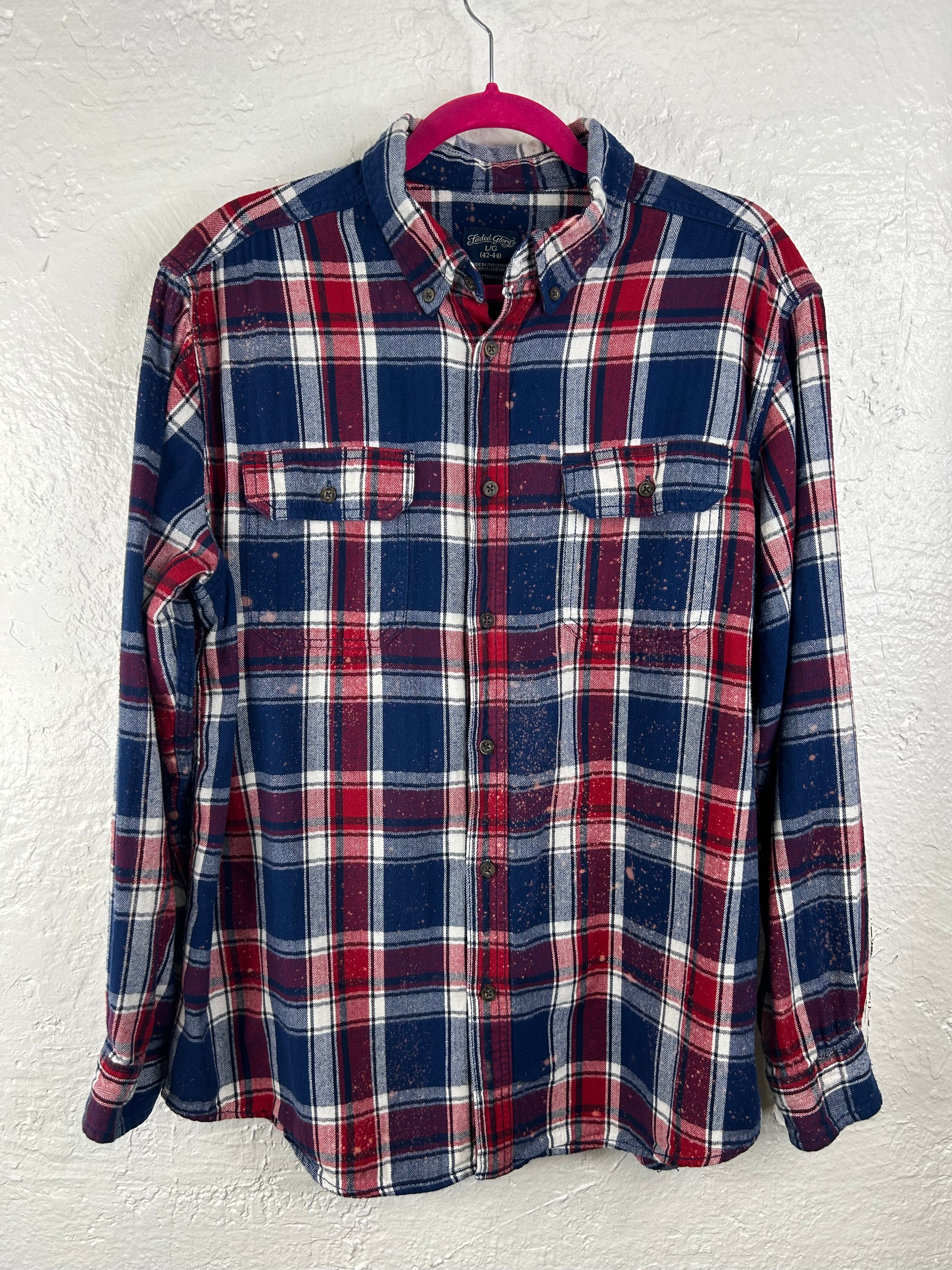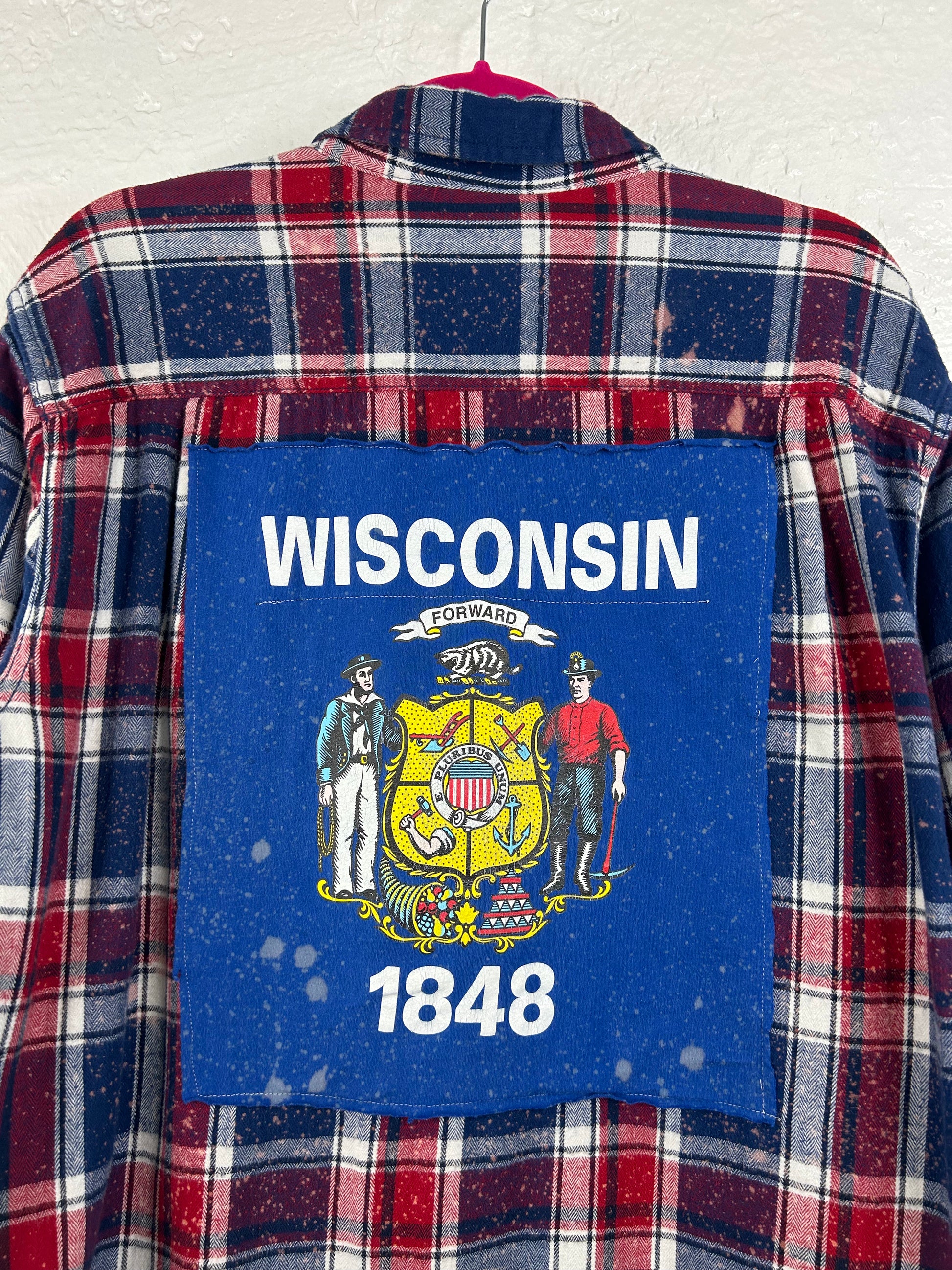 Wisconsin upcycled flannel shirt unisex size L blue red
